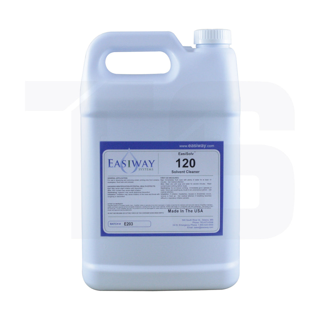 EasiSolv 120 Solvent Cleaner is a quick drying cleaner formulated to effectively dissolve and remove printing inks from screen printing mesh, pad printing tools, squeegees, flood bars and presses. The combination of components is designed to solubilize and remove virtually every type of ink and minimize any remaining stains. It has a high flash point yet will evaporate quickly and without leaving residue.