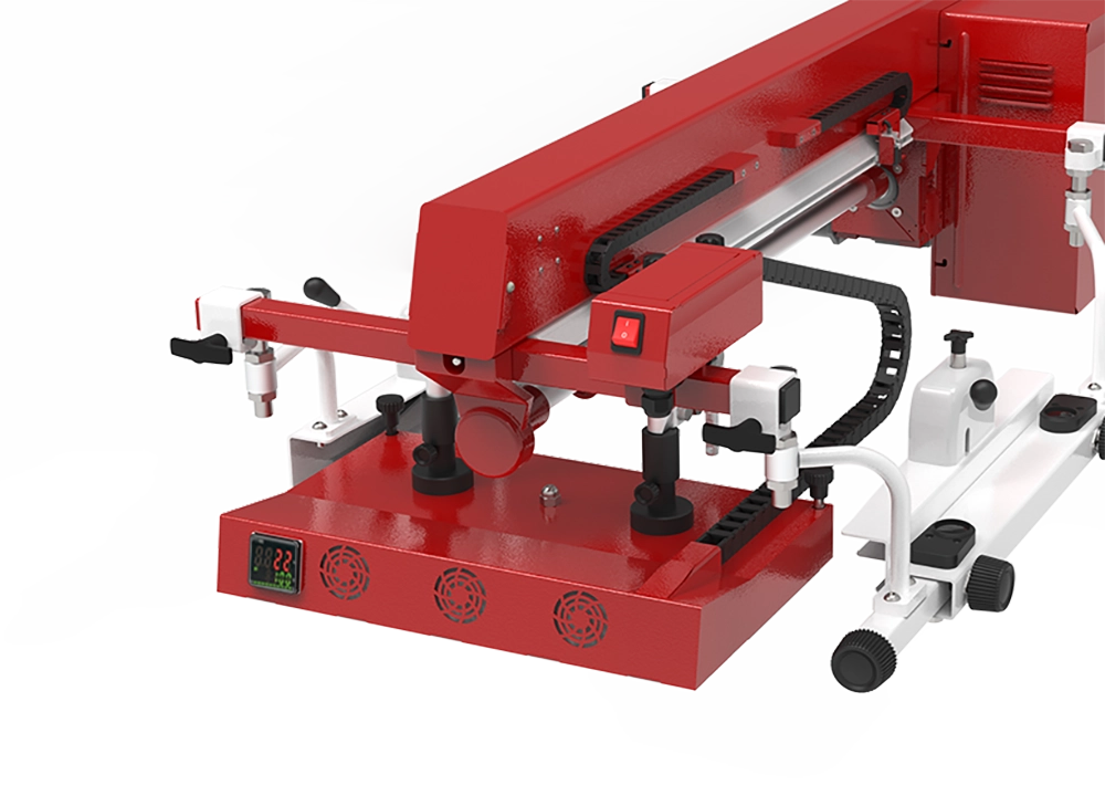 Easy Installation and Compact Design: The iron easily mounts where the squeegee holder sits on any Anatol automatic press. The compact electric box attaches to the crossbar, saving space compared to competitors’ designs. A robust power cable enclosed in a protective circuit enhances the device’s longevity and reliability.