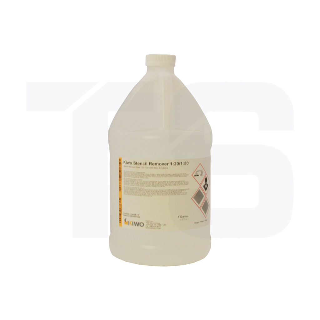 KIWO'S STENCIL REMOVER is an economical liquid concentrated stencil remover for all direct emulsions and capillary films. One quart makes up to 5 gallons of working solution. Larger quantities of 1 gallon and 5 gallon are available to be drop shipped only directly from Kiwo as they ship Hazardous. Please call Tech Support Screen Printing Supplies for pricing and availability.