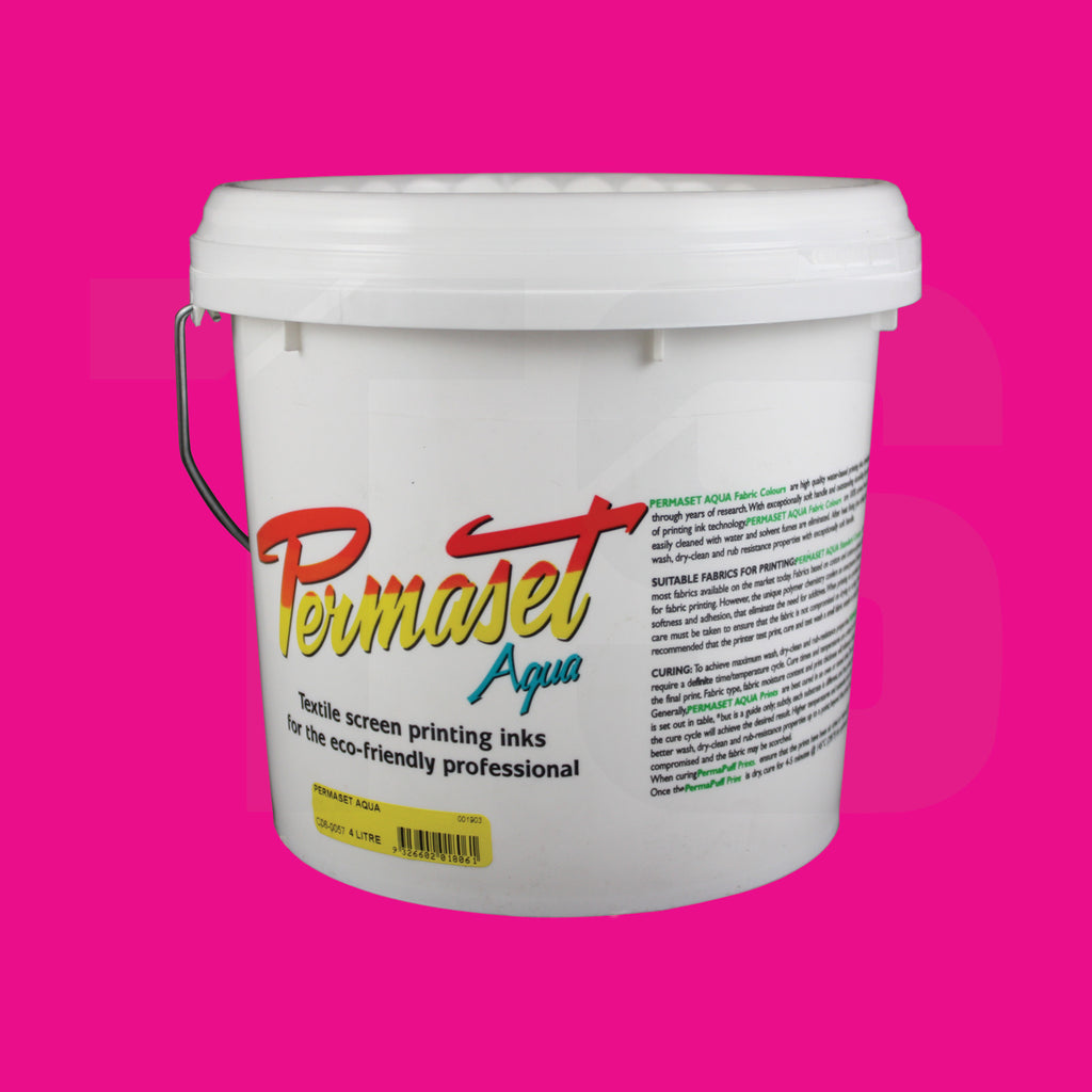 Permaset Aqua is a waterbase ink. It's 100% solvent free, environmentally friendly formula that provides intense pigments rich in coverage with exceptional color yield. The resilient resin base is at once both soft and incredibly strong, holding up beautifully to even the most severe rub and wash tests.